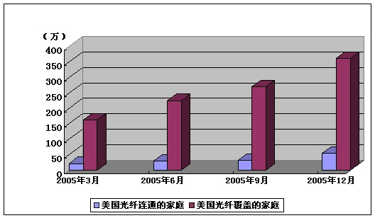 目前美國FTTH市場增長迅速,從2005年10月到2006年1月的四個月里,光纖覆蓋的家庭數增加了近100萬戶,平均每月新增用戶23萬,全美光纖覆蓋的家庭數超過360萬。從2005年4月到9月,平均每月新增用戶約18萬。