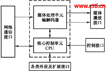 從圖1中可以看出,IPTV機頂盒的核心成分是CPU和編解碼器。機頂盒功能的強弱與選擇不同檔次的核心器件有直接關系。目前可見的機頂盒產(chǎn)品歸納起來主要基于以下三種結構: