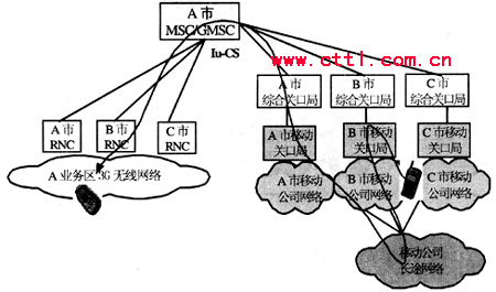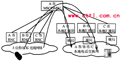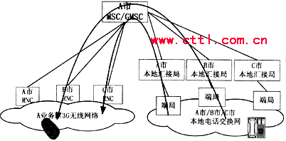 圖2 3G話務網與本地其他業務網互聯互通示意圖(以A市為例)
