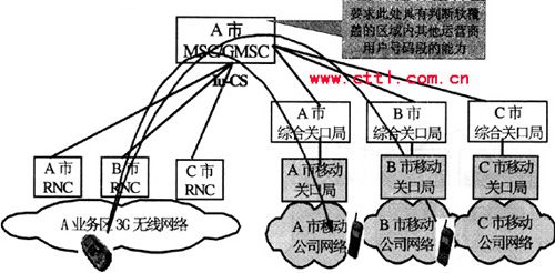 由于初期MSC/GMSC與其他運營商網絡的互通話務量都較少,為減少網間互聯點和互聯電路群,提高網間電路利用率,減少網間互聯談判的工作量,建議初期3G網絡與其他運營商網絡的互通通過現有關口局轉接,由于此時的關口局承擔3G網、固網等與其他運營商各業務網間的互聯互通,我們可以稱之為綜合關口局。由于綜合關口局沒有GMSC功能,對3G網絡而言,只是起一個話務轉接點的作用,所以不需要對現有關口局設備進行升級改造,也不會影響現有業務的互聯互通。