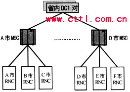利用現有長途交換網的DC1兼做省內3G網絡的匯接局。省內3G交換網采用2層網絡結構,MSC以負荷分擔的方式直接連接到本省的一對DC1;同時升級省內的一對DC1,使其滿足兼做3G網絡匯接局的功能要求;初期MSC之間不開設直達電路,由DC1進行轉接;視業務量的增長情況再考慮開設直達電路。