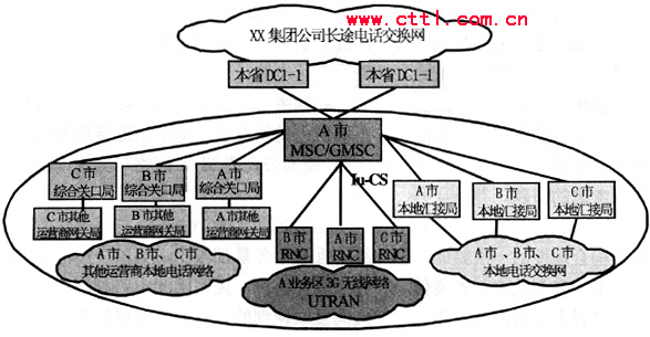 話務路由為:主叫3G用戶→A市MSC/GMSC→A/B/C市本地綜合關口局→A/B/C市移動公司關口局→被叫CMCC用戶