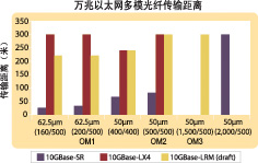 圖:多模光纖的種類不同,萬兆以太網(wǎng)PMD的性能也隨之不同