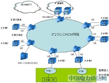 農村信息化是整個國民經濟和社會信息化的重要方面,信息產業部提出十一五“村通工程”目標,2010年農村實現“村村通電話、鄉鄉能上網”,2020年基本實現電話家家通的“電信小康”目標。由于地域較廣、居民分散、電壓不穩、運維不便等一些農村特有的因素,使得農村通信網絡建設有一些與城市不同的地方。本文主要介紹烽火網絡CWDM和CESP產品在農村鄉鎮業務匯聚到縣的應用方案。