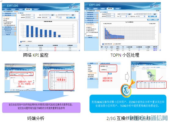 借助EXPT智能系統(tǒng)工具,通過自動(dòng)采集海量的CDL和MR數(shù)據(jù),實(shí)現(xiàn)快速網(wǎng)絡(luò)問題定位、網(wǎng)絡(luò)性能指標(biāo)監(jiān)控、覆蓋\干擾\質(zhì)量評(píng)估、質(zhì)量地理化顯示、終端分析等功能,高效提升網(wǎng)優(yōu)效率,相關(guān)分析功能圖如下: