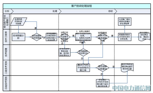 客戶投訴處理工作是站在客戶的角度來使用、檢查、維護(hù)網(wǎng)絡(luò),它貫穿于網(wǎng)絡(luò)使用的全過程,包括建設(shè)和維護(hù)階段,是客戶感知度的最充分體現(xiàn)。青島之前客戶投訴處理方式是客服中心收到投訴以后,反饋給投訴處理人員,投訴處理人員根據(jù)投訴信息確定投訴問題發(fā)生的地點(diǎn),分析是否是已知問題,如果非已知問題,則需要安排現(xiàn)場(chǎng)測(cè)試,通常已知問題非常少,現(xiàn)場(chǎng)測(cè)試的比例達(dá)到80%以上,必然增加了投訴處理的成本和時(shí)間,極大影響了用戶感知,因此需要我們掌握投訴處理的整個(gè)流程和各種各樣投訴問題的本質(zhì),針對(duì)現(xiàn)網(wǎng)總結(jié)出了一套完整的應(yīng)對(duì)投訴的流程方案,使得我們面對(duì)投訴時(shí)不在束手無措,處理起來更加胸有成竹。