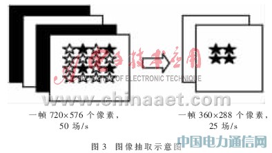 抽取后1s的平均視頻數據量=360×288×2 B×8 bit×12.5 幀/s=20.736 Mb/s。壓縮率約為(20.736 Mb/s)/(0.48 Mb/s)=43.2。