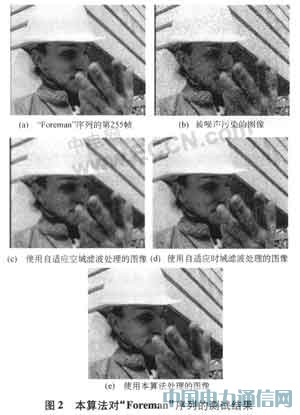 本文只對加了高斯噪聲的“Foreman”測試序列進行了處理。處理結果如圖2所示。