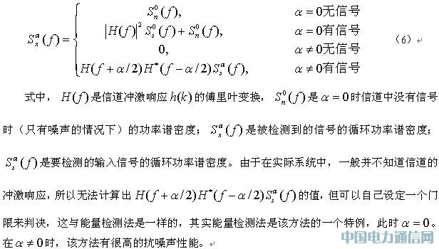 其中參數 叫做循環頻率,每個循環頻率都是信號持續時間T的整數倍。當 時,CAF和CSD就是通常所說的自相關函數和功率譜密度。不同的信號具有不同的循環功率譜,可以利用此特性來檢測輸入信息,其判決方法為