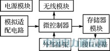 整個測試系統由模擬適配電路、外部晶振、微控制器、存儲器模塊、電源管理模塊、無線收發模塊以及接口電路組成,如圖1所示。