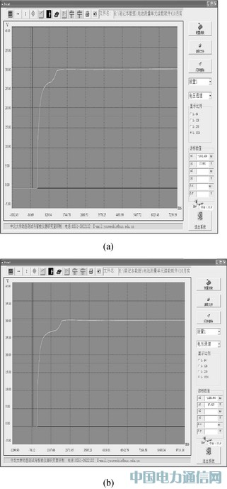 圖4是用本測試系統所測得的兩條實驗曲線。該曲線所測的是引信電池[8]的電壓量。曲線可以分成兩部分,一部分是電池電壓隨著時間的增加而增加,另一部分是隨著時間的增加電壓量保持不變。這是由引信的特殊結構所致。