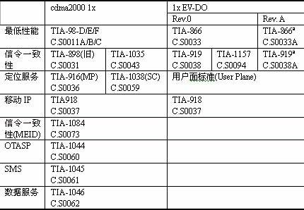 目前,CDMA手機實驗室測試主要依據(jù)3GPP 2或TIA標準化組織所定義的各項技術(shù)規(guī)范來進行,所涉及的主要測試標準如表1所示。