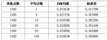 表3. 在不同的平均次數的情況下的EVM和標準差。