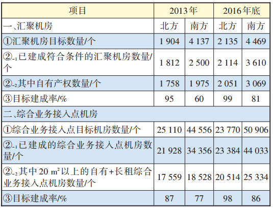 表1 匯聚機房和綜合業務接入點機房建設進展