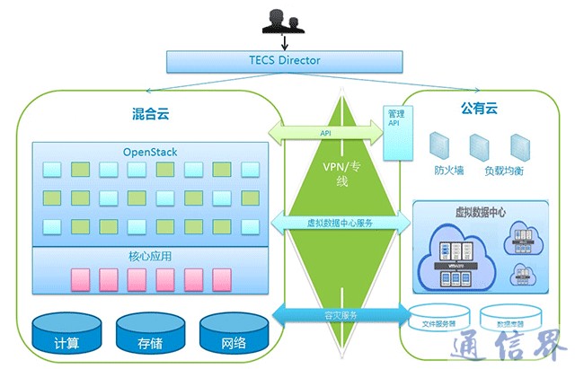 首先,更融合。混合云解決方案能夠實現與諸多主流公有云服務商接口對接,并封裝為統一接口提供給基礎設施層,對混合云中的計算、網絡和存儲資源統一分配、使用和監管,實現對私有云和公有云的統一管理。在私有云向公有云的彈性擴展中,對MANO和APP屏蔽私有云和公有云的差異,并提供一致性的服務,為運營商提供端到端的一站式解決方案。