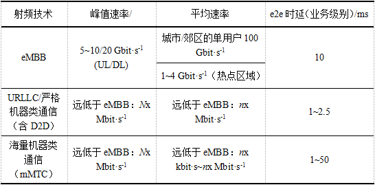 表1 各種5G業(yè)務(wù)預(yù)期的流量特性(基于ITU-R M.2083和3GPP)