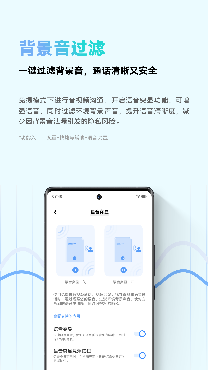 背景音過濾:一鍵過濾背景音,通話清晰又安全