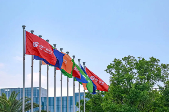 中國(guó)廣電、中廣投、盒子科技、中廣云長(zhǎng)的彩旗飄揚(yáng)在前海國(guó)際會(huì)議中心上空