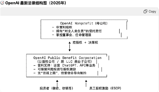 OpenAI聯合創始人兼CEO奧特曼宣布,“我們決定將 OpenAI的營利子公司從“有限利潤責任公司”(capped-profit LLC)轉換為“公益性公司”(Public Benefit Corporation,簡稱 PBC)。這一結構在Anthropic 和 xAI等其他AI公司已被廣泛采用。PBC 結構允許公司在追求盈利的同時,明確地將公共利益納入其核心使命。”